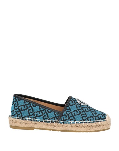 espadrilles, logo-print, metal applications, round toe, flat, rubber sole, leather lining, contains non-textile parts of animal origin