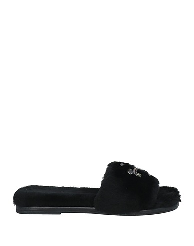 leather, brand logo, solid color, lined in goat hair, round toeline, flat, rubber sole, contains non-textile parts of animal origin, slide sandals, large sized