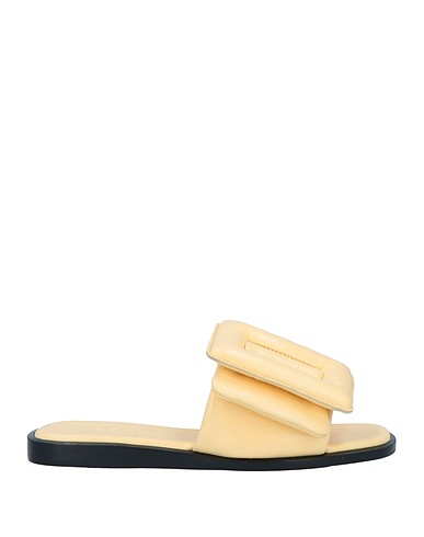 leather, embellished, solid color with appliqués, round toe, flat, contains non-textile parts of animal origin, slide sandals