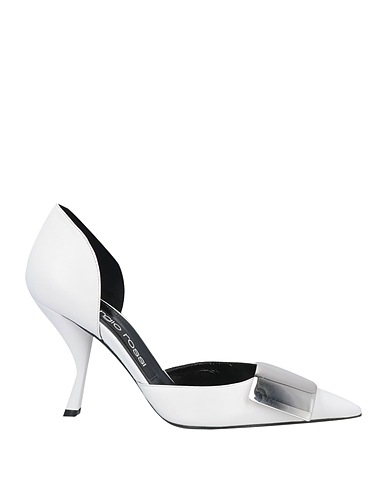 pumps, leather, solid color with appliqués, brand logo, metal applications, leather lining, pointed toe, sculpted heel, leather sole, contains non-textile parts of animal origin