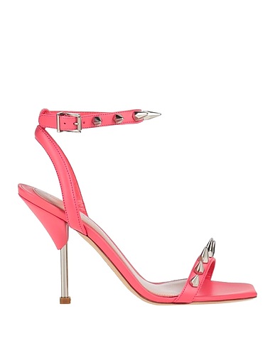 leather, studs, solid colour with appliqués, leather backing, wrapping straps closure, square toeline, geometric heel, leather sole, contains non-textile parts of animal origin, ankle strap sandal
