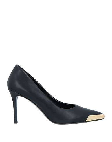 leather, brand logo, contrasting applications, two-tone, fabric inner, narrow toeline, spike heel, rubber cleated sole, contains non-textile parts of animal origin, stilettos