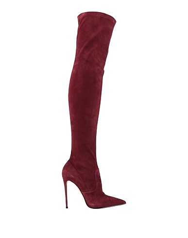 over-the-knee boots, suede, no appliqués, solid color, leather lining, pointed toe, stiletto heel, covered heel, leather/rubber sole, handmade, contains non-textile parts of animal origin