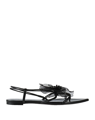 thong sandals, leather, nappa leather, solid color with appliqués, floral appliqués, leather lining, pointed toe, flat, leather sole, contains non-textile parts of animal origin