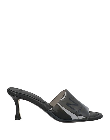slide sandals, rubber, solid color with print, brand logo, round toe, spool heel, leather lining, leather sole, contains non-textile parts of animal origin, small sized