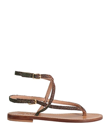 thong sandals, leather, multicolor, glittered, buckle-fastening ankle strap, round toe, flat, leather sole, leather lining, contains non-textile parts of animal origin