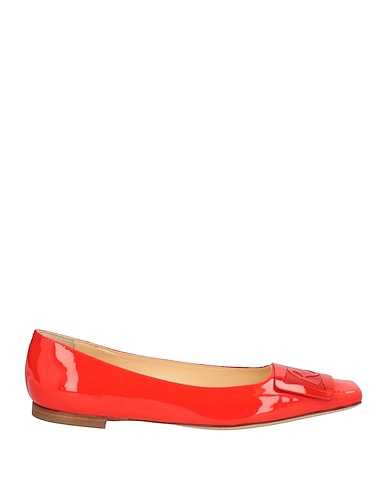 ballet flats, patent leather, solid color, brand logo, leather lining, square toe, flat, leather/rubber sole, contains non-textile parts of animal origin