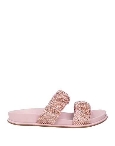 satin, rhinestones, solid color, leather backing, round toeline, flat, rubber sole, contains non-textile parts of animal origin, sandals