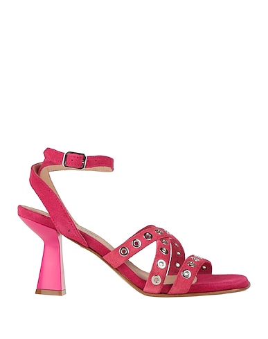 ankle strap sandals, suede, solid color with appliqués, embellished, leather lining, buckle-fastening ankle strap, square toe, spool heel, leather sole, contains non-textile parts of animal origin