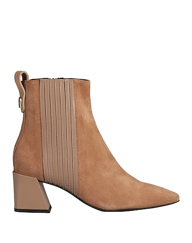 chelsea boots, suede, solid color, brand logo, leather lining, zipper fastening, elasticized inserts, pointed toe, square heel, rubber sole, contains non-textile parts of animal origin