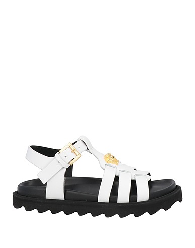leather, brand logo, solid color, leather lining, buckle fastening, round toeline, flat, rubber cleated sole, contains non-textile parts of animal origin, ankle strap sandals