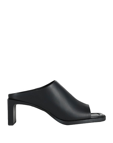 leather, brand logo, solid color, fabric inner, square toe, geometric heel, rubber sole, contains non-textile parts of animal origin, slide sandals