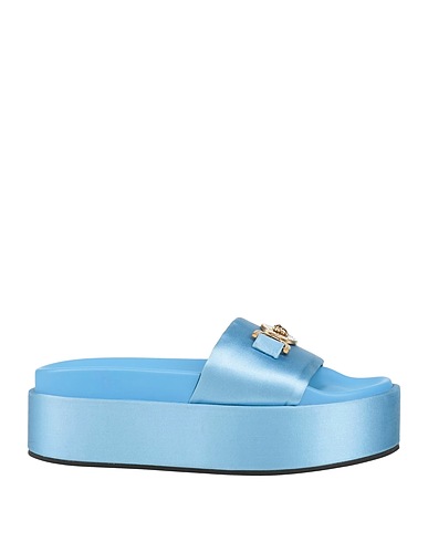 slide sandals, satin, solid color with appliqués, brand logo, embellished, round toe, flatform, fully lined, rubber sole