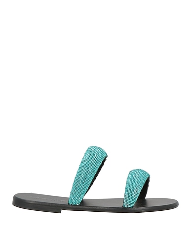 coated fabric, crystals, solid color with appliqués, fabric inner, round toe, flat, rubber sole, sandals
