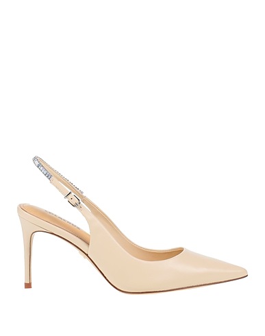 leather, crystals, solid color with appliqués, leather lining, buckle fastening, pointed toe, stiletto heel, leather sole, contains non-textile parts of animal origin, slingback pumps