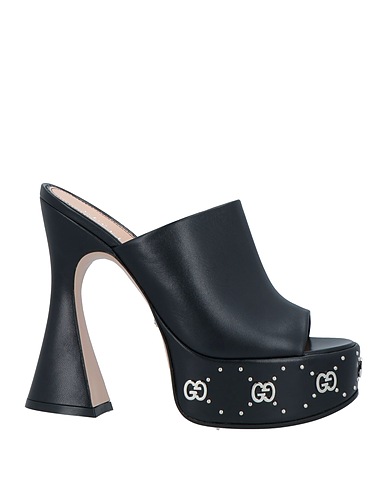 slide sandals, leather, brand logo, solid color with appliqués, leather lining, round toe, sculpted heel, leather sole, contains non-textile parts of animal origin