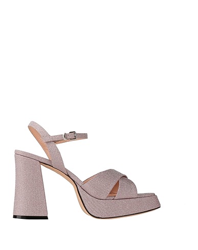 canvas, glittered, no appliqués, solid color, leather lining, buckle-fastening ankle strap, round toe, geometric heel, covered heel, leather sole, contains non-textile parts of animal origin, ankle strap sandals