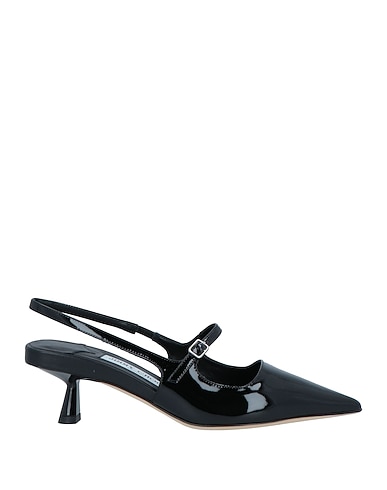 slingback pumps, patent leather, no appliqués, solid color, leather lining, elasticized inserts, buckle fastening, pointed toe, spool heel, leather sole, contains non-textile parts of animal origin