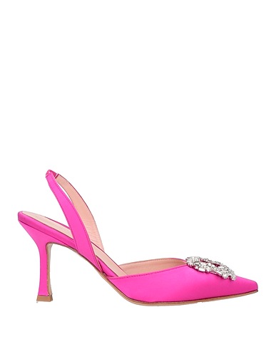 satin, crystals, solid color with appliqués, leather lining, pointed toe, spool heel, covered heel, leather sole, contains non-textile parts of animal origin, slingback pumps, large sized