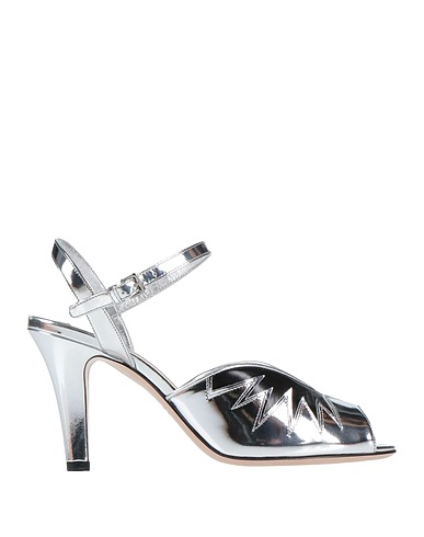leather, metallic, no appliqués, two-tone, leather lining, buckle-fastening ankle strap, pointed toe, stiletto heel, leather sole, contains non-textile parts of animal origin, ankle strap sandals