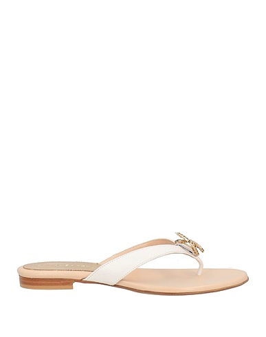 thong sandals, pebbled-leather, solid color with appliqués, crystals, leather lining, round toe, flat, leather/rubber sole, contains non-textile parts of animal origin