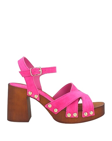 sandals, suede, solid color, no appliqués, buckle fastening, round toe, geometric heel, rubber sole, unlined, contains non-textile parts of animal origin