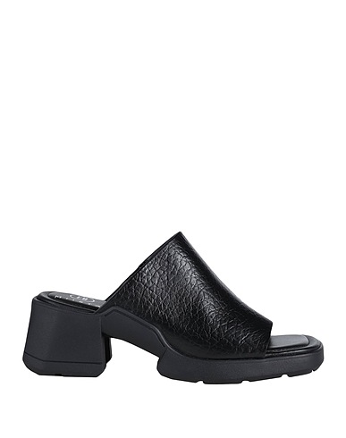 textured leather, no appliqués, solid color, rubber lining, square toe, square heel, rubber sole, contains non-textile parts of animal origin, slide sandals