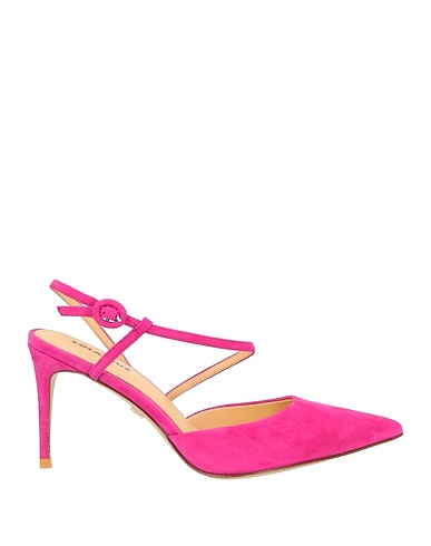 suede, no appliqués, solid color, leather lining, buckle fastening, pointed toe, stiletto heel, covered heel, leather sole, contains non-textile parts of animal origin, slingback pumps
