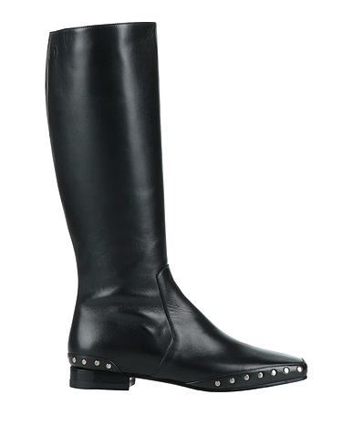 leather, studs, solid color, leather lining, zipper fastening, square toe, flat, leather sole, contains non-textile parts of animal origin, boots, large sized