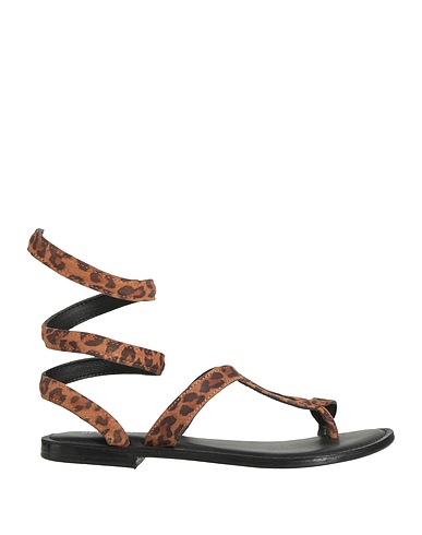 thong sandals, leather, leopard-print, no appliqués, leather lining, round toe, flat, leather/rubber sole, contains non-textile parts of animal origin