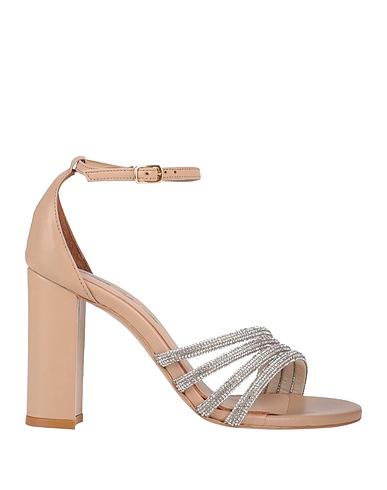 leather, crystals, two-tone, leather lining, buckle-fastening ankle strap, round toe, square heel, rubber sole, contains non-textile parts of animal origin, ankle strap sandals