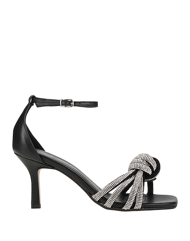 leather, crystals, solid color with appliqués, leather lining, buckle-fastening ankle strap, square toe, spool heel, covered heel, rubber sole, contains non-textile parts of animal origin, ankle strap sandals