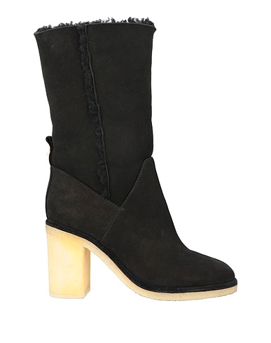 padded ankle boots, suede, solid color, no appliqués, lined in shearling, round toe, square heel, rubber sole, contains non-textile parts of animal origin