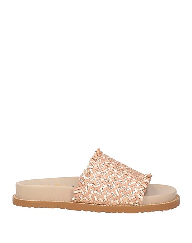 leather, metallic, no appliqués, two-tone, leather lining, buckle fastening, round toe, flat, rubber cleated sole, contains non-textile parts of animal origin, slide sandals