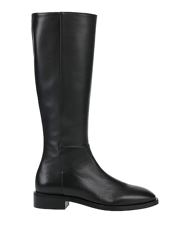 leather, brand logo, solid color, lined interior, zipper fastening, round toe, square heel, rubber cleated sole, contains non-textile parts of animal origin, riding boots