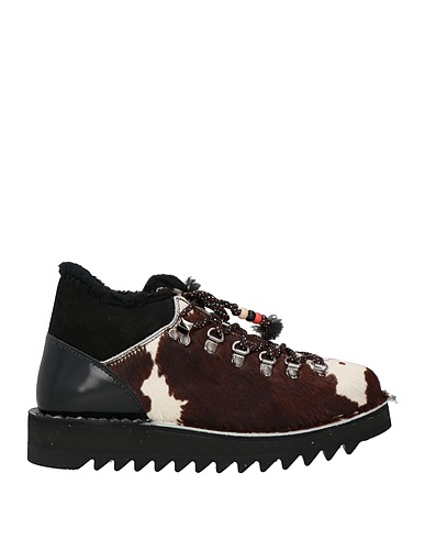 padded ankle boots, glossed-leather, calf hair, multicolor, no appliqués, lined in shearling, lace-up, round toe, low heel, rubber cleated sole, contains non-textile parts of animal origin