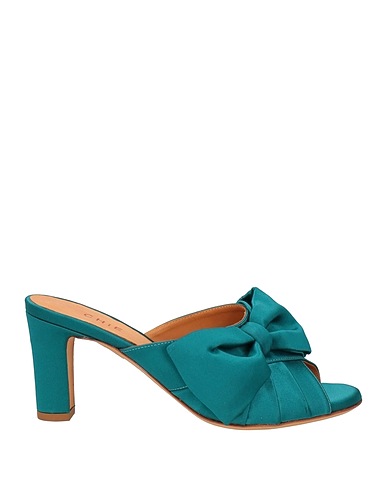 satin, bow-detailed, solid color with appliqués, leather lining, round toe, geometric heel, covered heel, leather/rubber sole, contains non-textile parts of animal origin, slide sandals, small sized