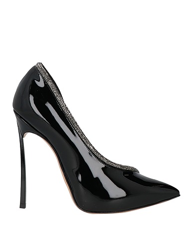pumps, patent leather, solid color with appliqués, crystals, leather lining, pointed toe, stiletto heel, leather sole, contains non-textile parts of animal origin