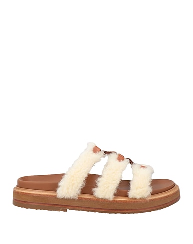 leather, shearling, no appliqués, two-tone, leather lining, round toe, flat, rubber sole, contains non-textile parts of animal origin, sandals