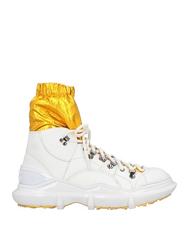 coated fabric, metallic, brand logo, solid color, fully lined, lace-up, round toe, flat, rubber cleated sole, hiking boots