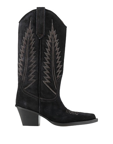 cowboy boots, suede, solid color with appliqués, embroidered, leather lining, pointed toe, square heel, leather sole, contains non-textile parts of animal origin