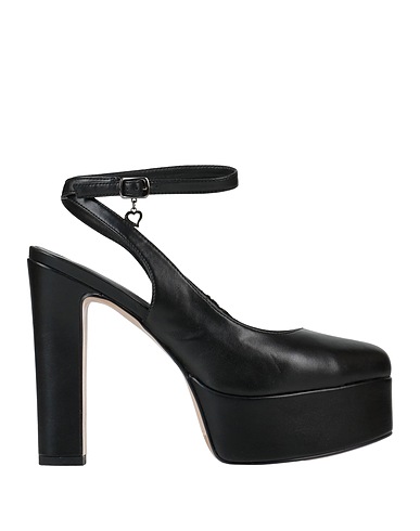 pumps, synthetic material, solid color, platform, brand logo, leather lining, buckle-fastening ankle strap, round toe, square heel, covered heel, rubber sole, contains non-textile parts of animal origin