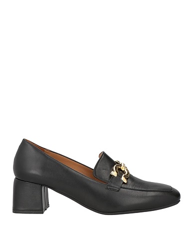 leather, embellished, solid color with appliqués, leather lining, round toe, square heel, covered heel, rubber sole, contains non-textile parts of animal origin, loafers