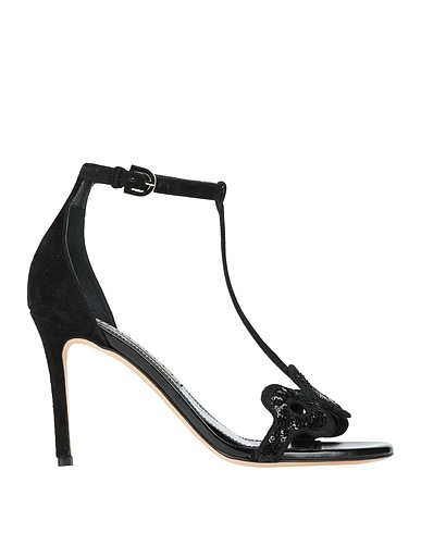 ankle strap sandals, suede, solid color with appliqués, sequins, leather lining, buckle-fastening ankle strap, round toe, stiletto heel, covered heel, leather sole, contains non-textile parts of animal origin