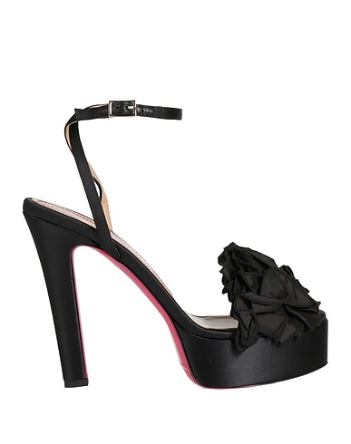 ankle strap sandals, satin, ruffles, solid color, leather lining, buckle-fastening ankle strap, round toe, square heel, leather sole, contains non-textile parts of animal origin