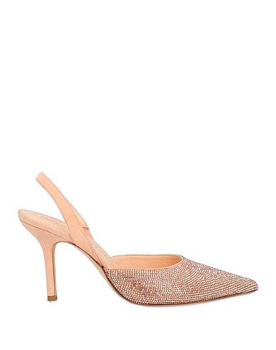 slingback pumps, leather, crystals, solid color with appliqués, leather lining, pointed toe, spike heel, covered heel, leather sole, contains non-textile parts of animal origin