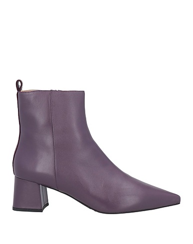 calf boots, leather, no appliqués, solid color, leather lining, zipper fastening, pointed toe, square heel, rubber sole, contains non-textile parts of animal origin
