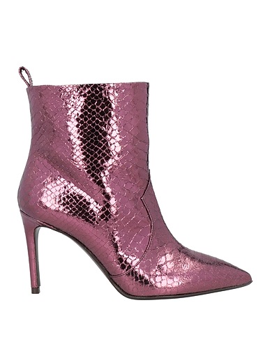 calf boots, coated fabric, metallic, no appliqués, snakeskin-print, leather lining, pointed toe, stiletto heel, covered heel, leather/rubber sole, contains non-textile parts of animal origin