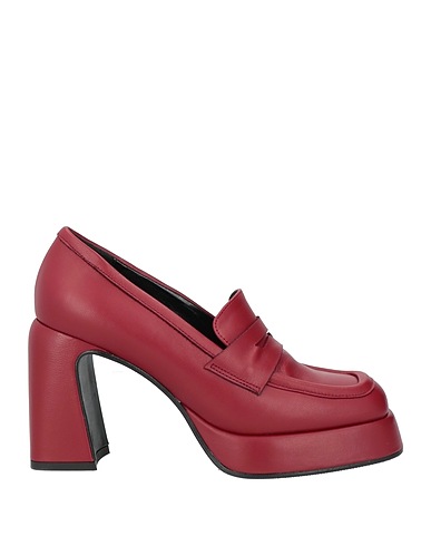 loafers, leather, no appliqués, solid color, leather lining, round toe, square heel, rubber sole, contains non-textile parts of animal origin