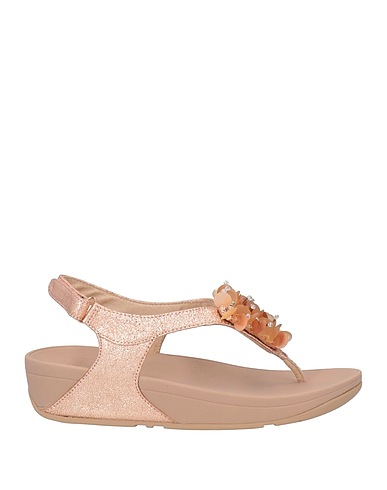 technical thong sandals, leather, metallic, solid color with appliqués, sequins, crystals, velcro fastening, round toe, wedge, rubber sole, leather lining, contains non-textile parts of animal origin